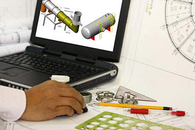 Afin d'ajuster au mieux nos prestations, toutes nos études sont en 3D, à l'aide du logiciel SolidWork. Cela nous permet d'obtenir une très grande réactivité dans la réalisation de nos études, et également de générer des notes de calculs par éléments finis pour un meilleur dimensionnement des structures..
